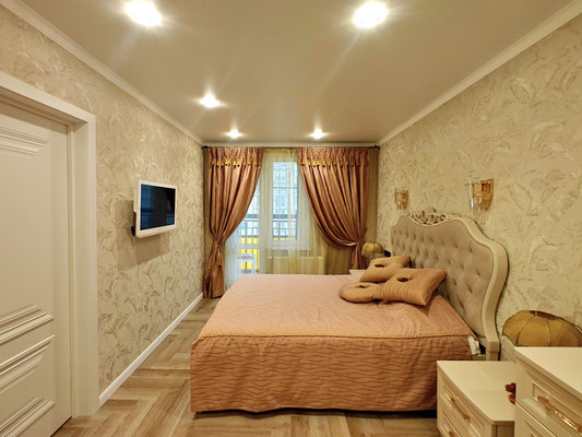 Арт. 120123477 В продаже отличная двухкомнатная квартира с дизайнерским ремонтом, дорогой мебелью и бытовой техникой.Ремонт в теплых тонах, сделан только из качественных материалов, практически не жили, состояние новое. На балкон выход из спальни. Предусмотрена гардеробная комната.Санузел раздельный.Натяжные потолки, точечные светильники, на полу кварцвиниловое покрытие. Установлен бойлер.Вся мебель и бытовая техника остается.Взрослый собственник. Квартира свободна от проживания. Прекрасный вид из окна.Отличное месторасположение, в шаговой доступности магазины, кафе, лицей, детсады, остановка общественного транспорта и т.д.Рассматриваем варианты обмена. Примем в оплату ваше жилье.Ипотека проходит.Рядом ЖК Весна Проспект Победы Файзи Сахарова Мой Ритм